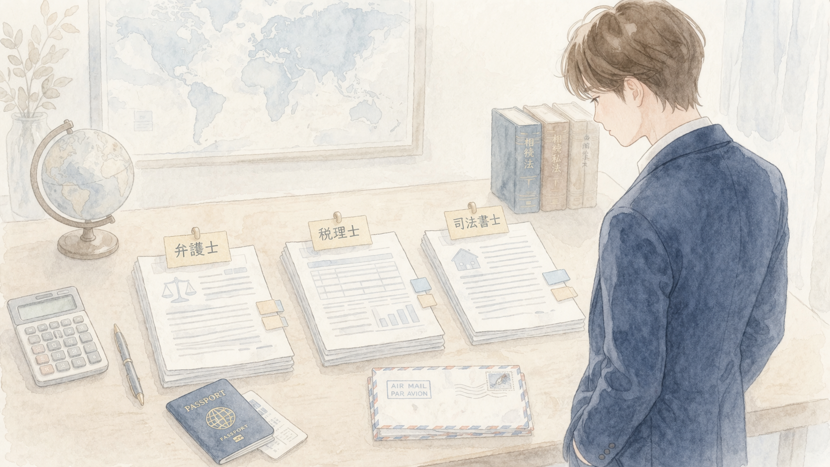 相続税の申告が必要なら税理士、日本に不動産があるなら司法書士、というふうに。